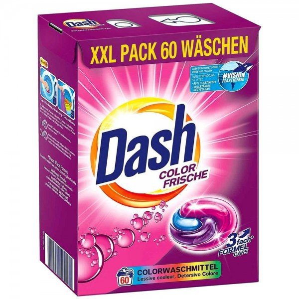 Dash дарит вашей одежде бодрящую свежесть, чистоту и сияющую чистоту. Капсулы Dash невероятно практичны. Капсулы идеально дозированы, что предотвращает передозировку. Dash развивает полную отстирывающую способность при температуре от 30 °C и гарантирует надежное и долговременное удаление пятен. Концентрированная формула Dash снижает расход воды.
